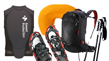 LVS Geräte, Lawindenrucksäcke, Schneeschuhe, Rückenprotektoren, Rodeln mit Kinderlehne…
