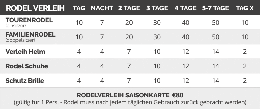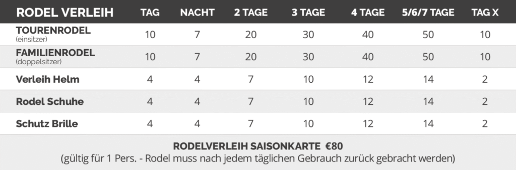 | beim Rodelverleih Saisonkarte muss nach jedem täglichen Gebrauch zurück gebracht werden